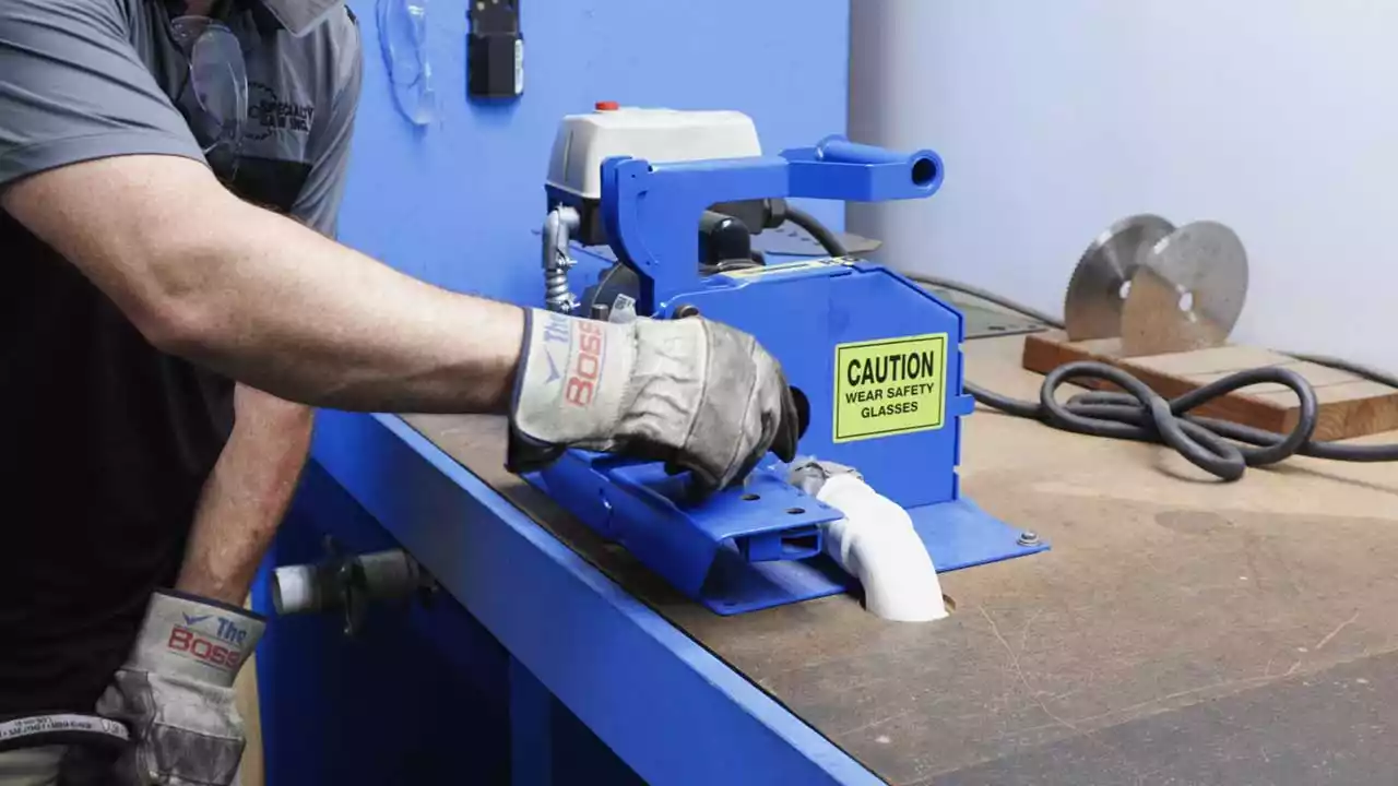 Clean Cuts™ saws use controlled hose bending to produce a cleaner, more perpendicular cut — minimizing fray and distortion at the hose end. The adjustable peg system fine-tunes the bend angle based on hose diameter, ensuring optimal positioning for every pass.